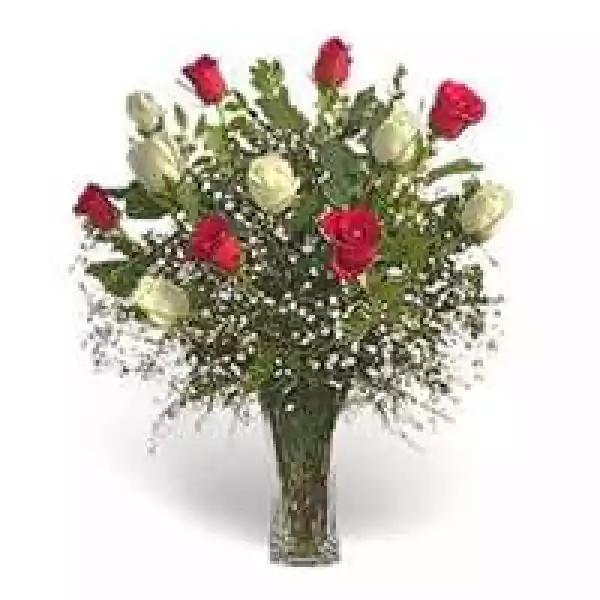 Vase 12 Bicolor Roses